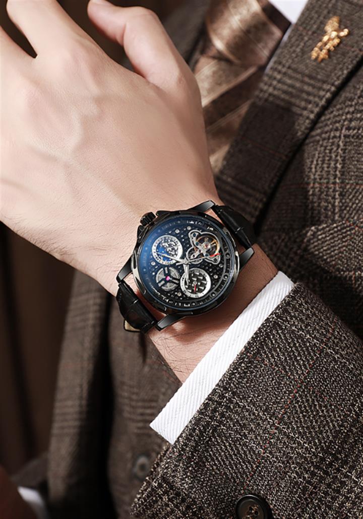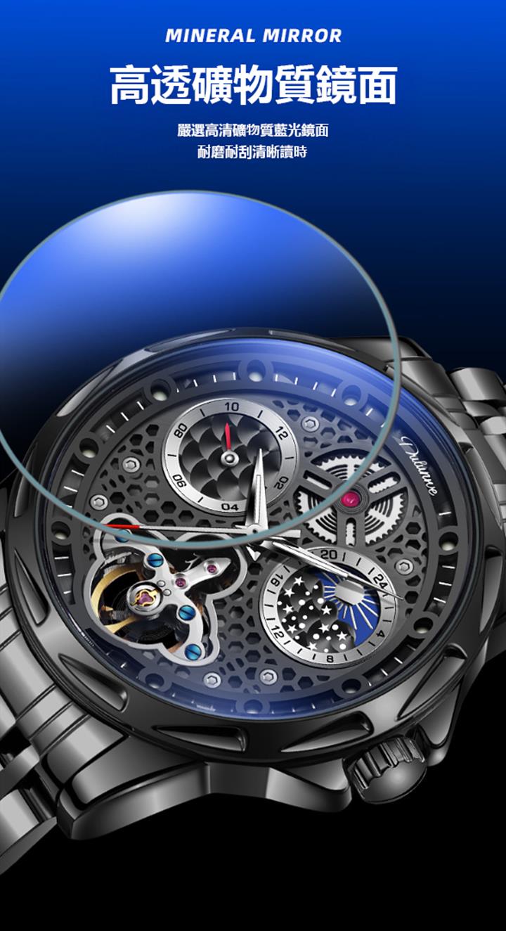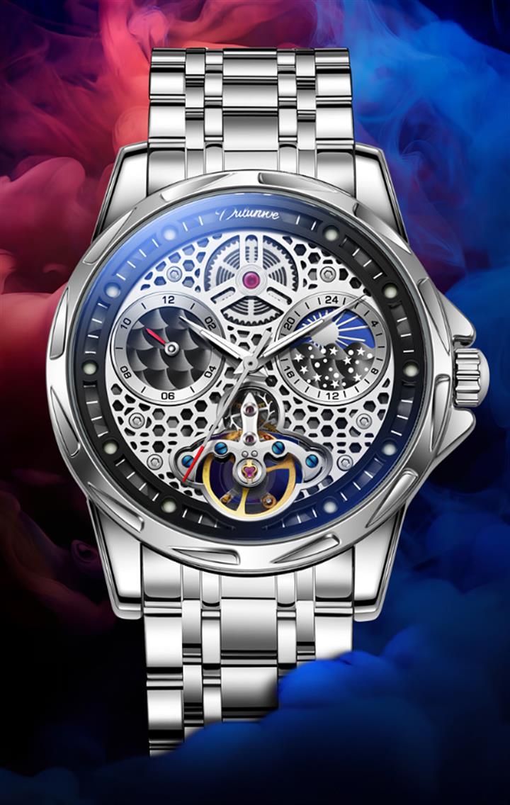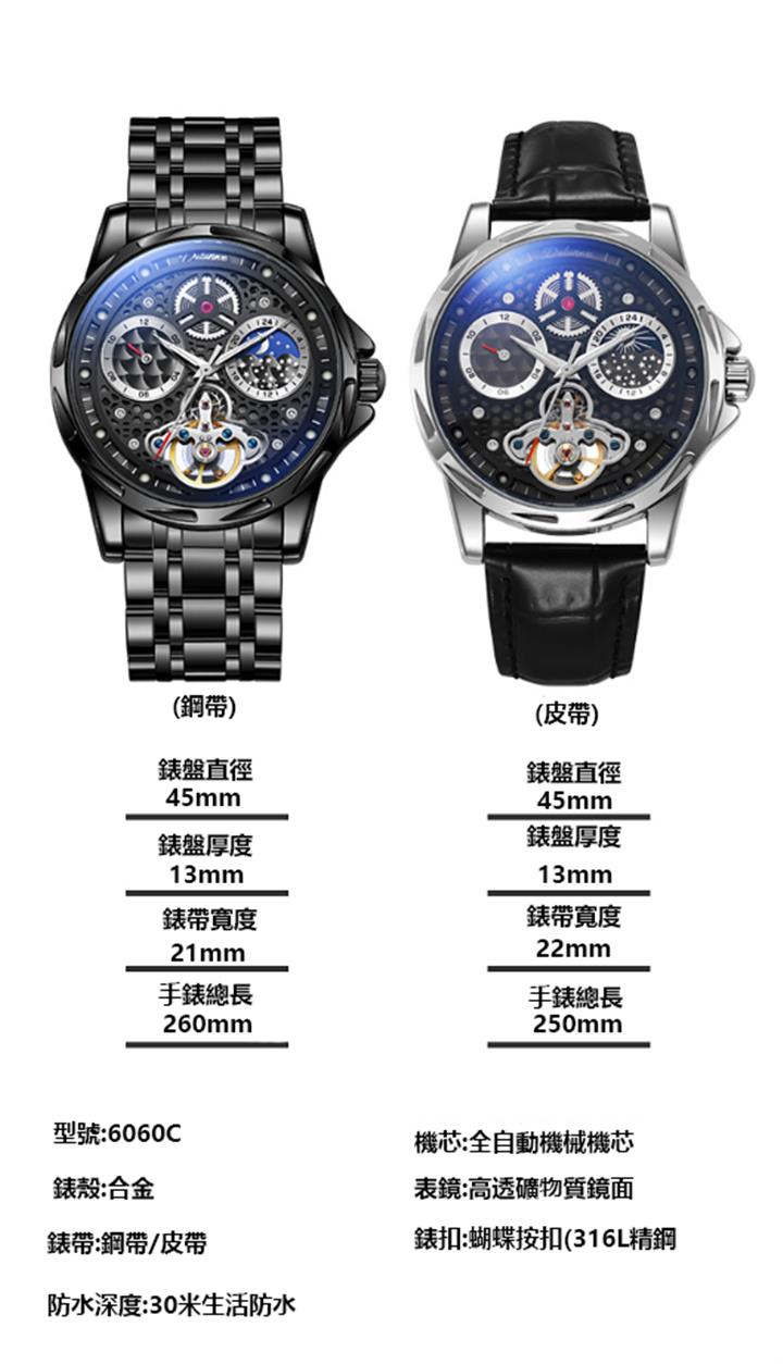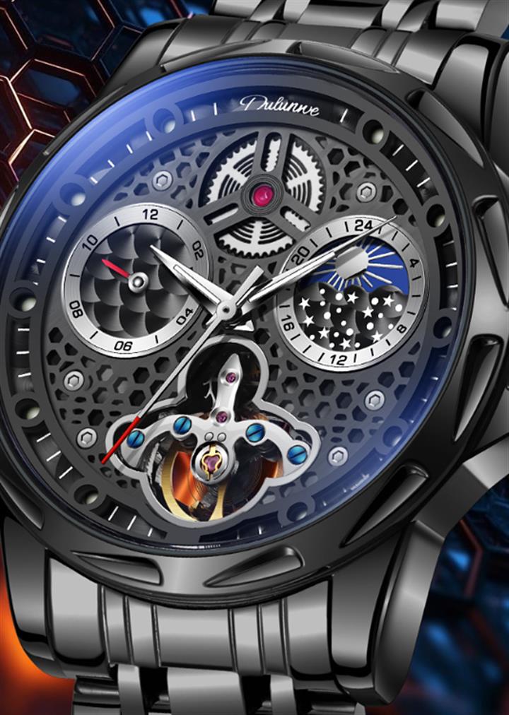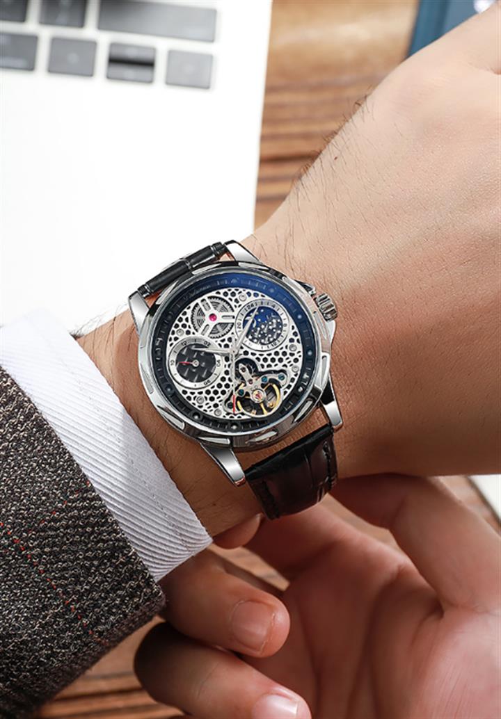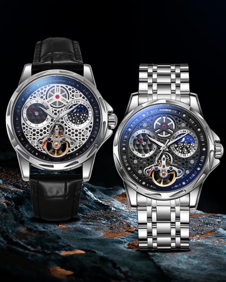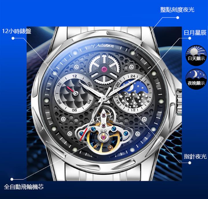 鏤空月相夜光機械表wat1952