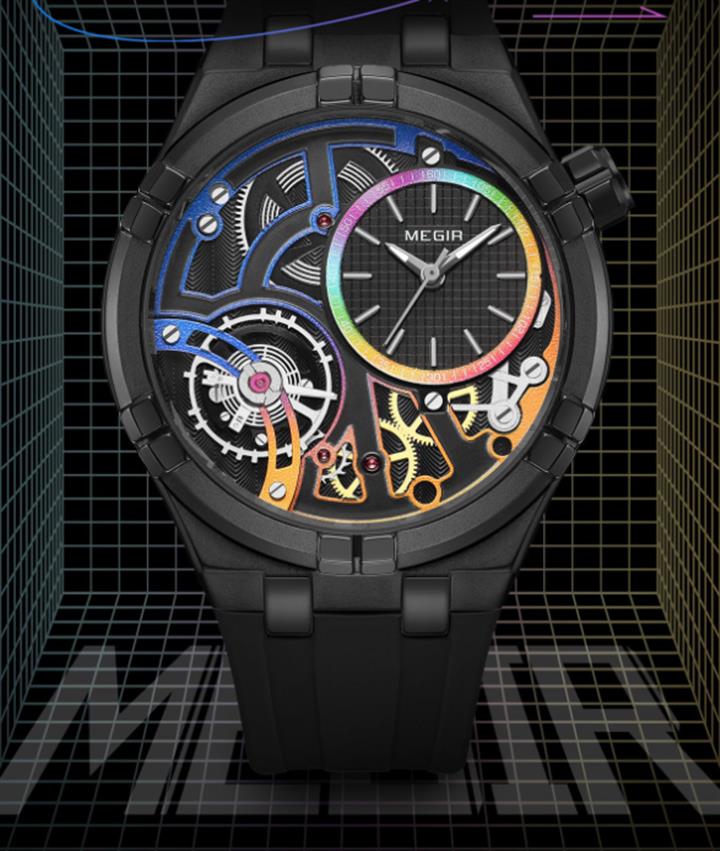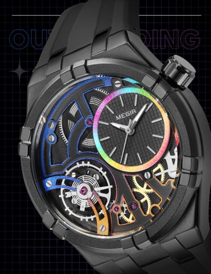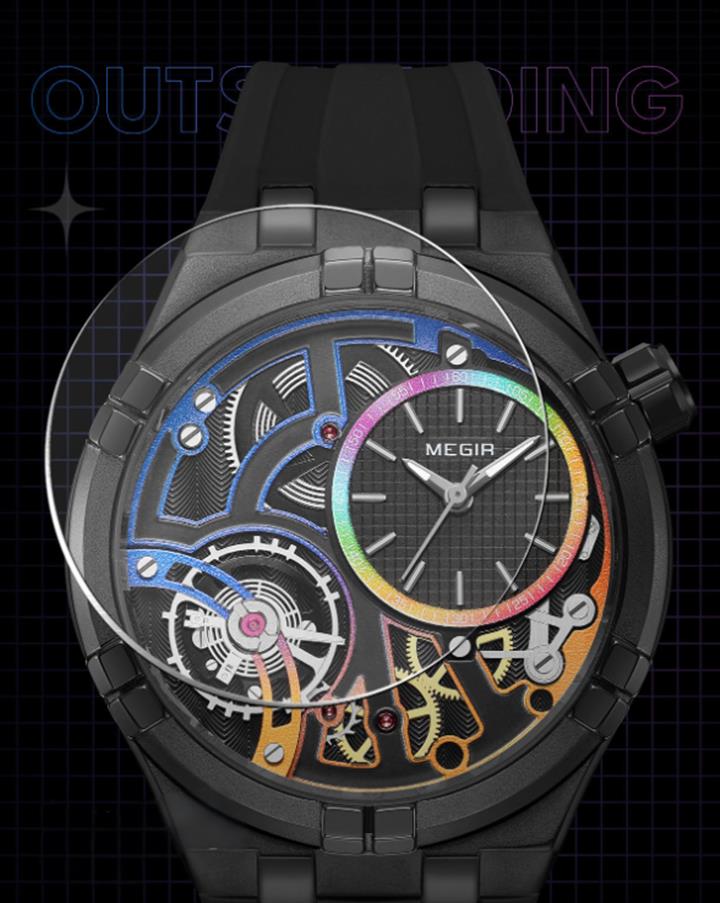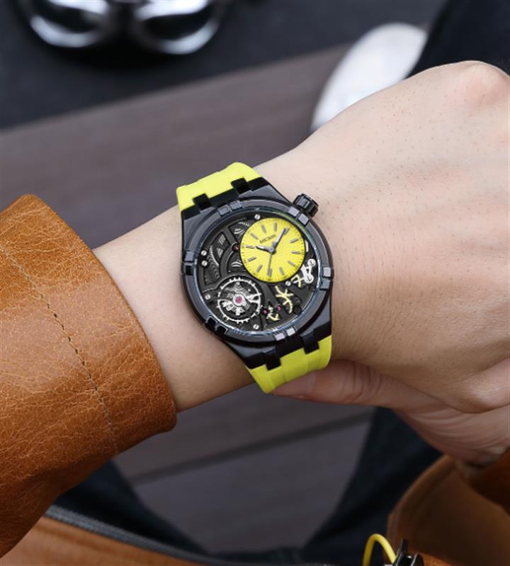 潮流夜光陀飛輪三眼六針手表Wat2066