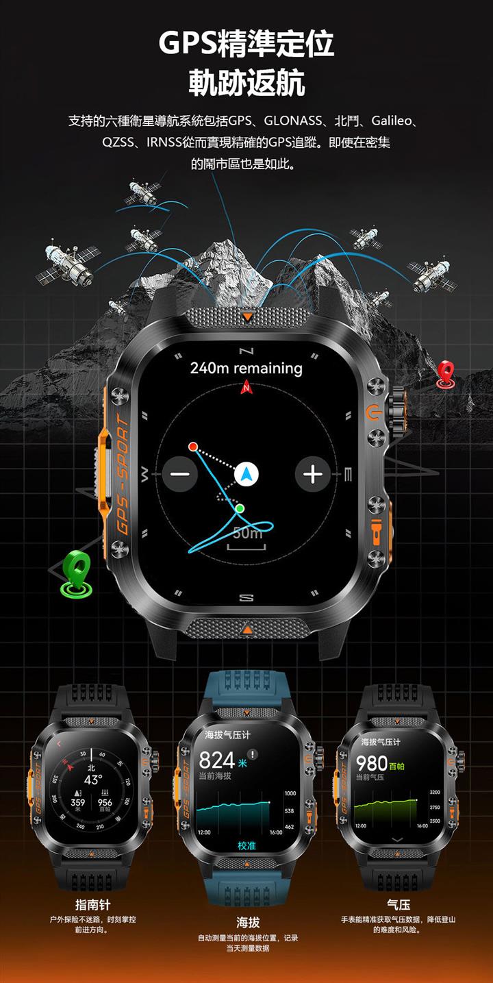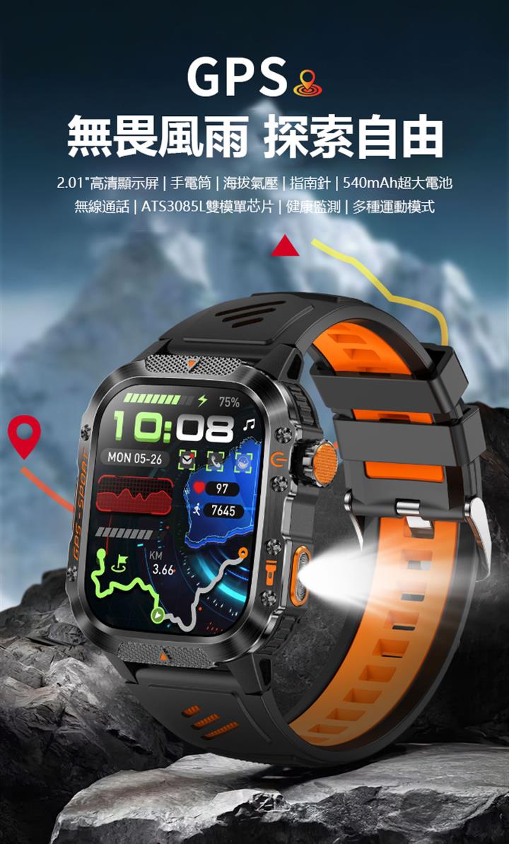男士登山計步藍牙測距手錶 wat320