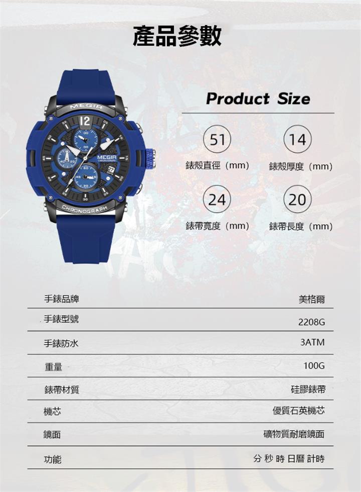 全自動機械多功能橡膠帶大號錶 wat1850